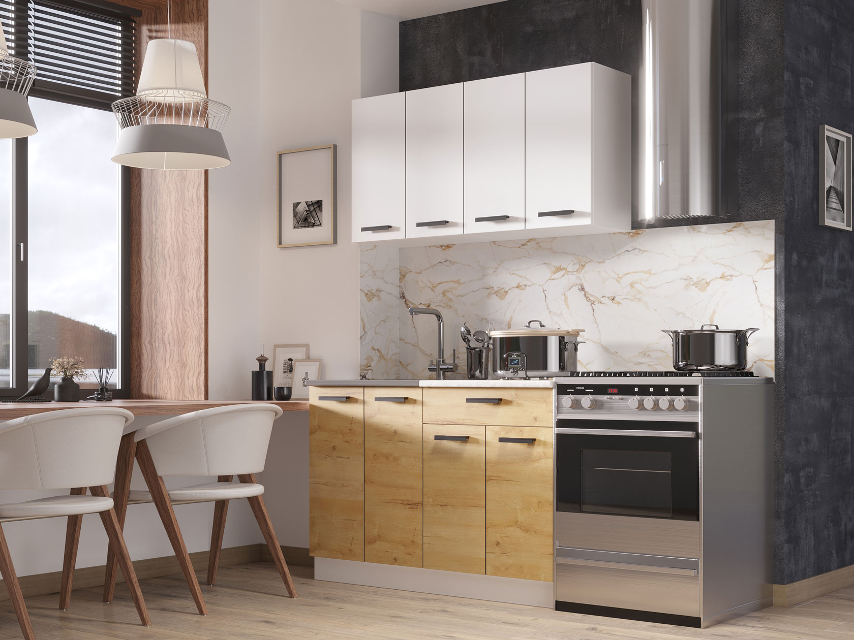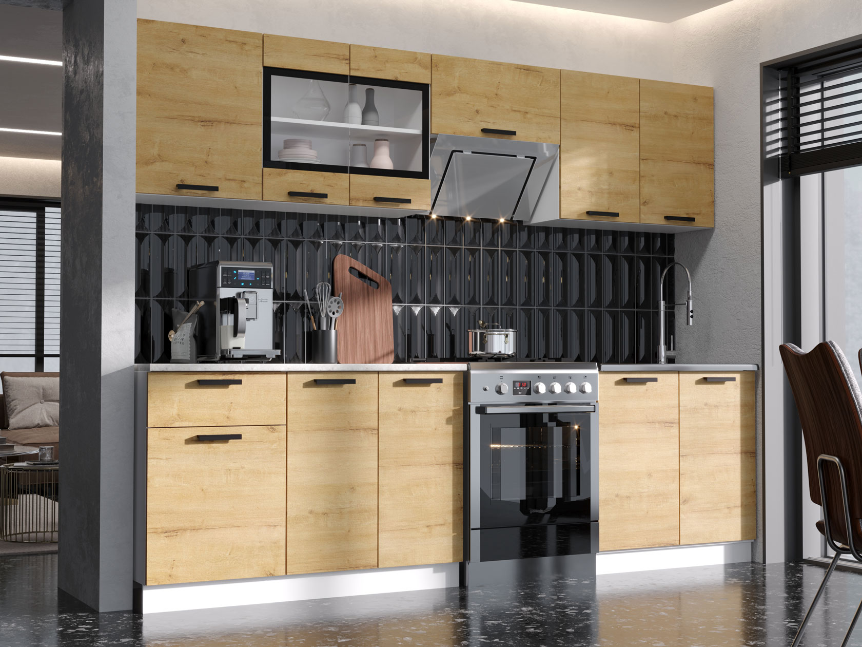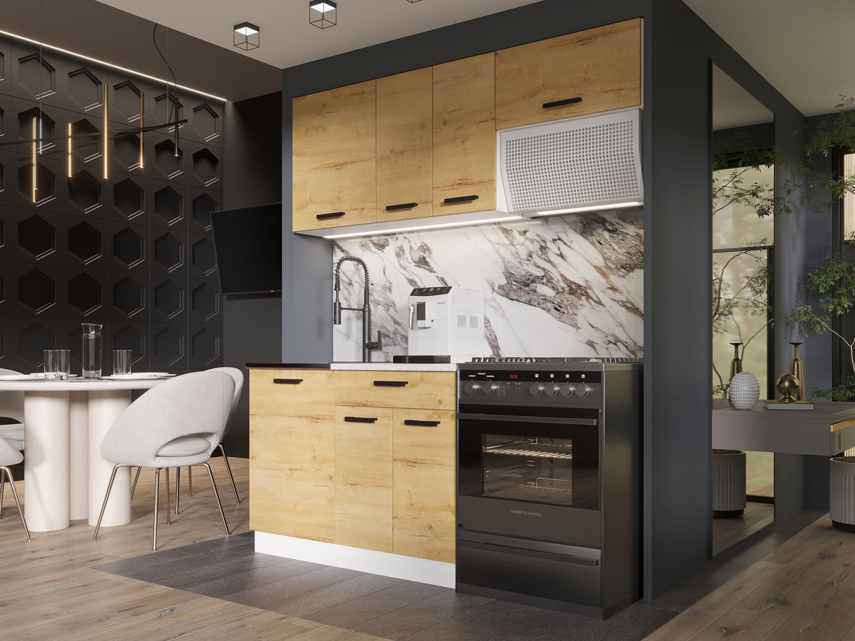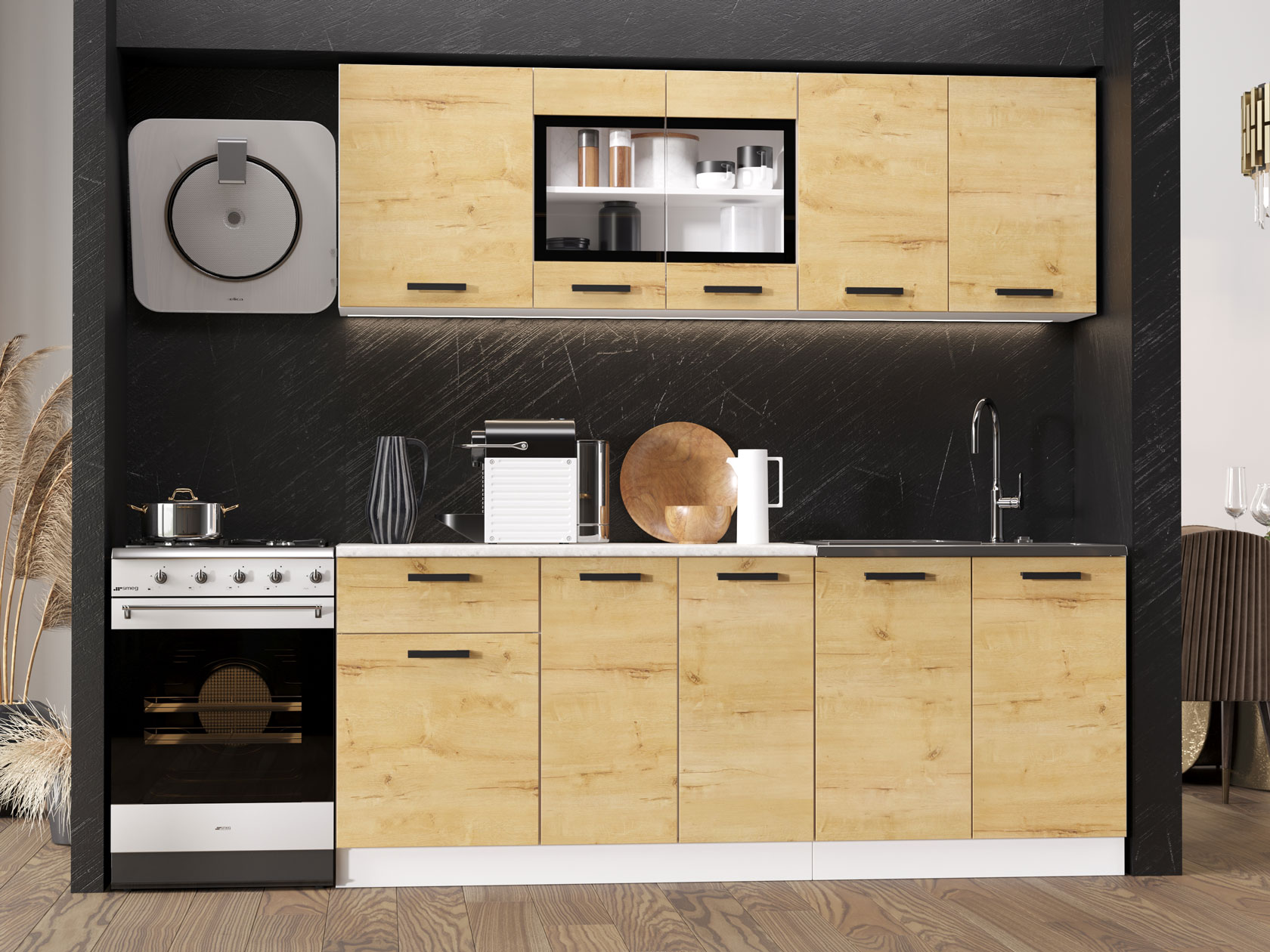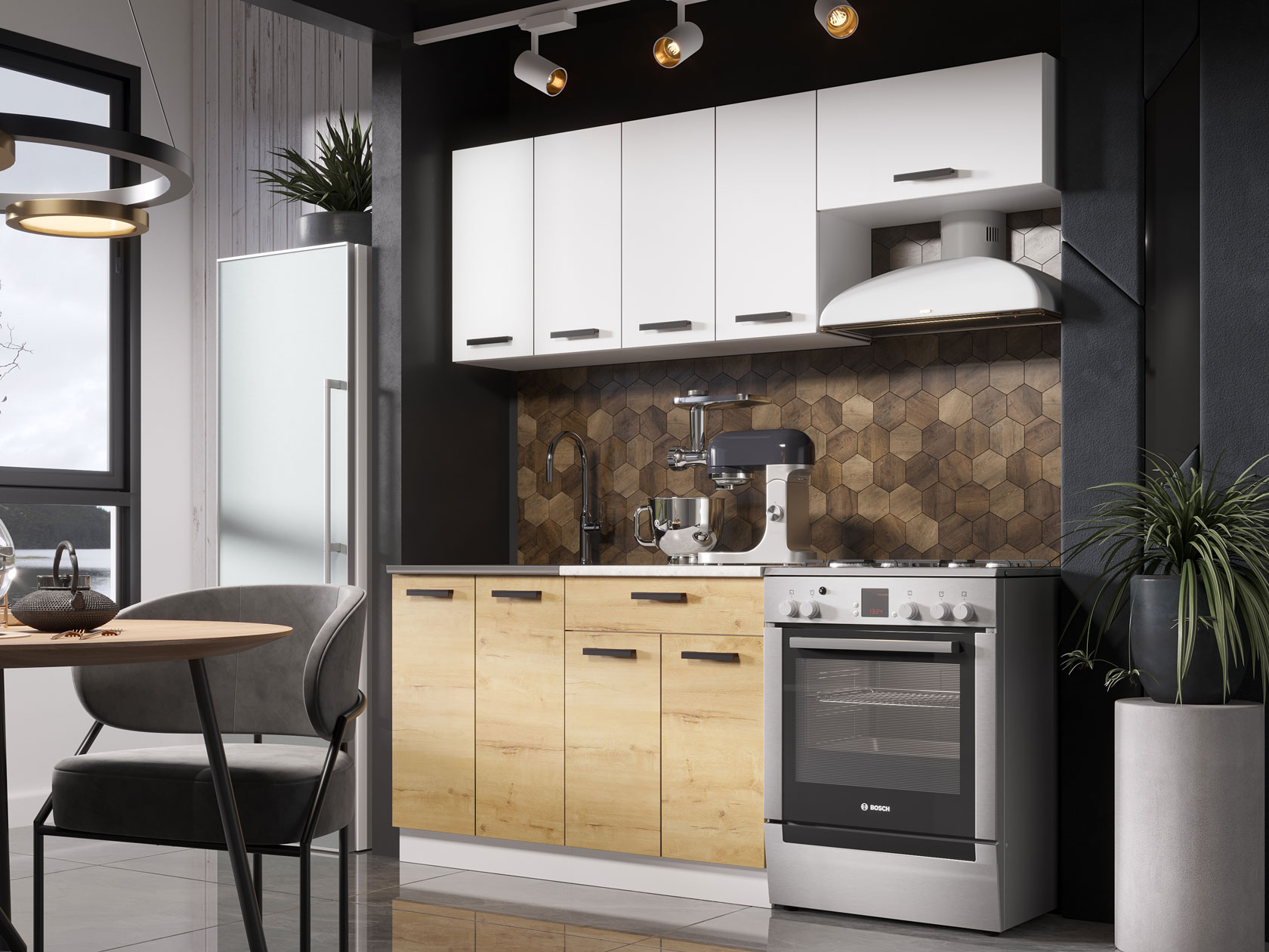 Белый гладкий / Дуб Вотан / столешница Калаката / Со шкафом под вытяжку / 240 см