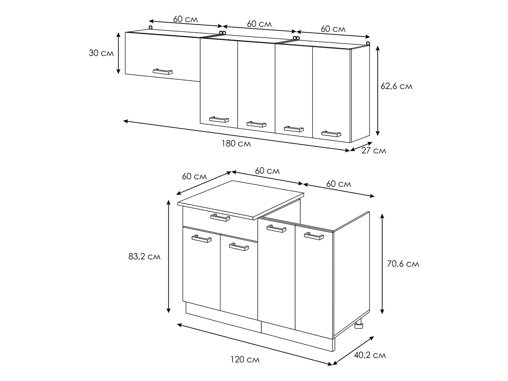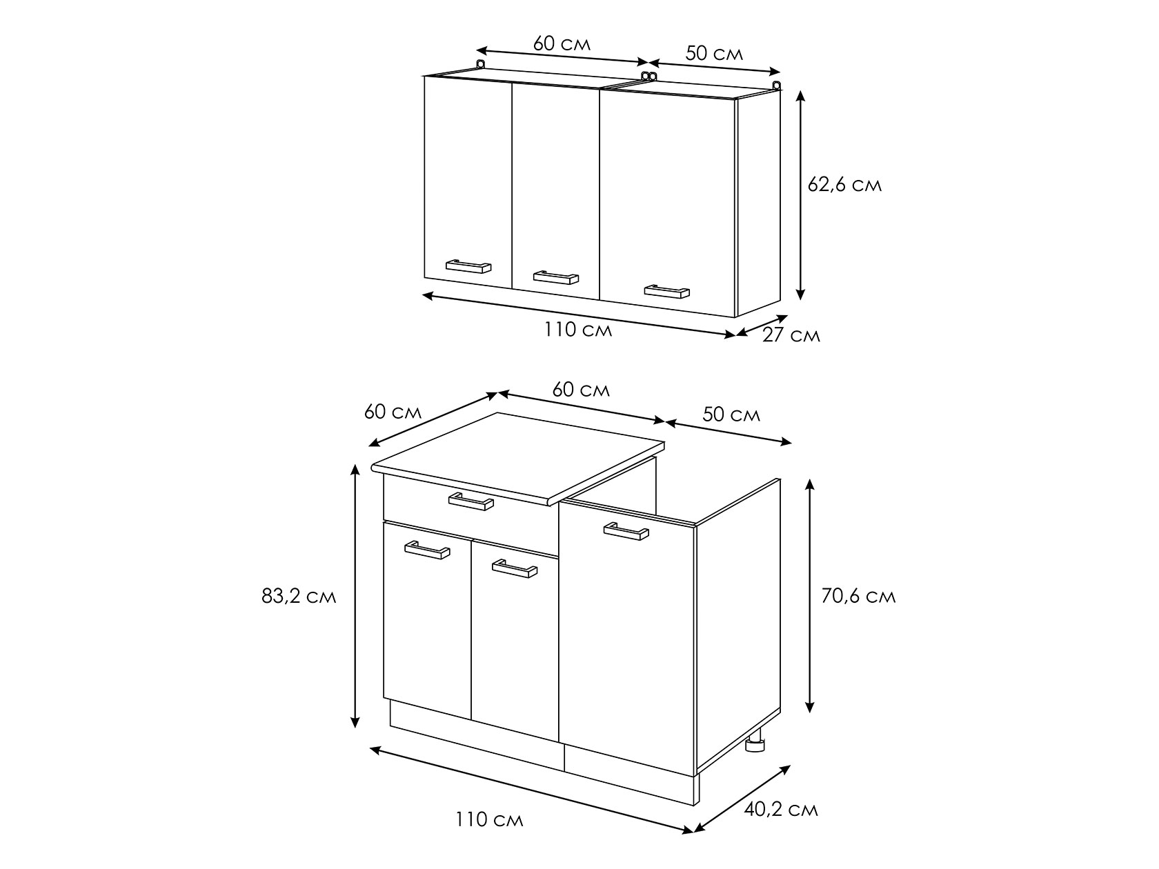 Обратите внимание, стол под мойку не комплектуется столешницей. Мойка, сушилка и стеновая панель в комплект не входят. У гарнитура имеются зазоры для дополнительных коммуникаций.