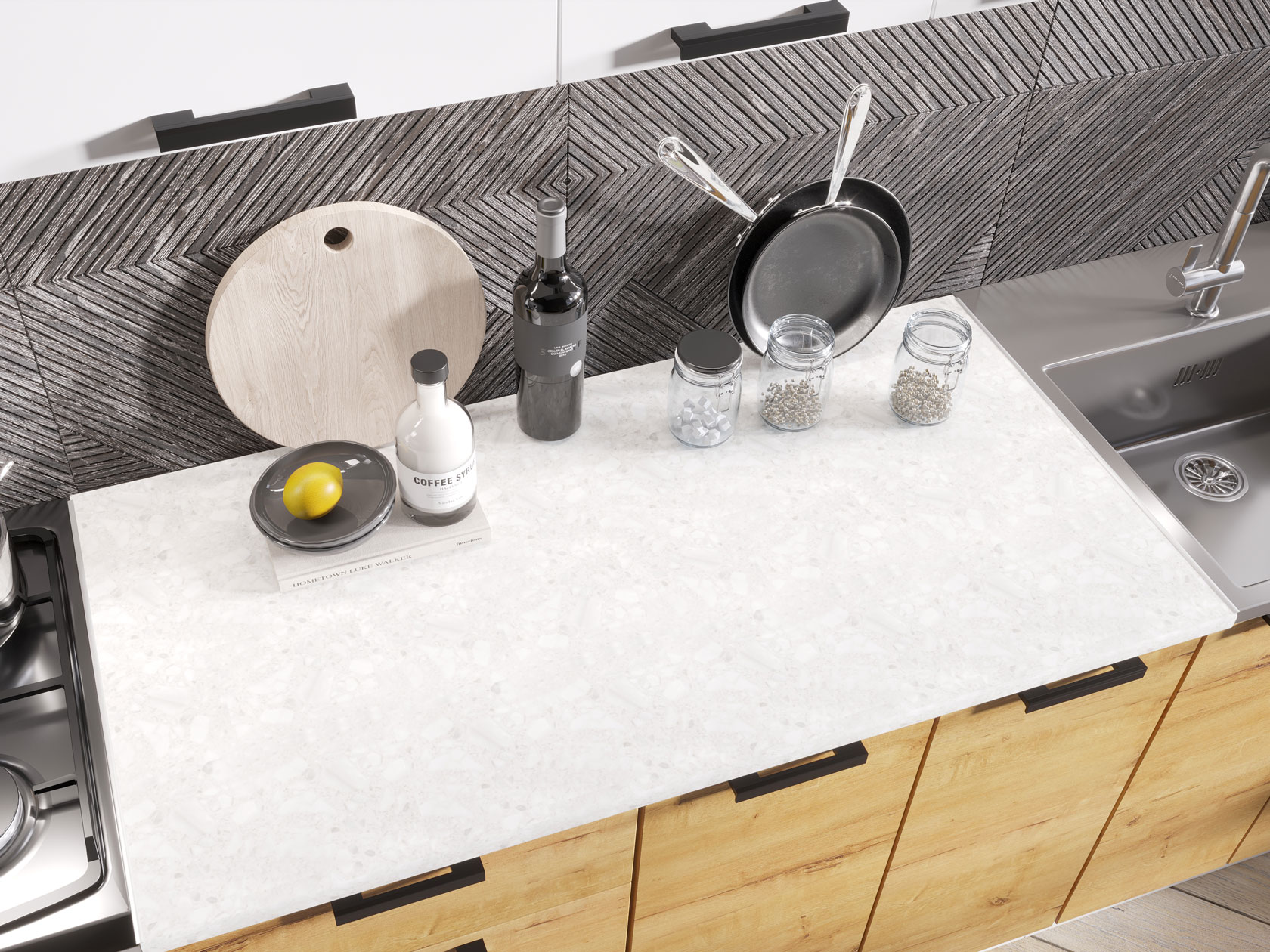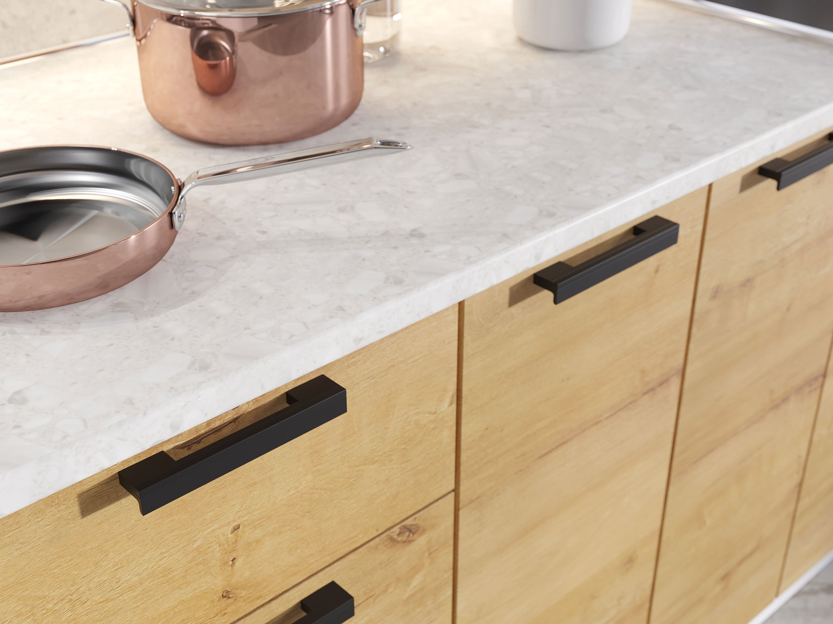 В данном гарнитуре предусмотрен стол для накладной мойки, которая подбирается исходя из ширины модуля под мойку и глубины столешницы соседних модулей.
