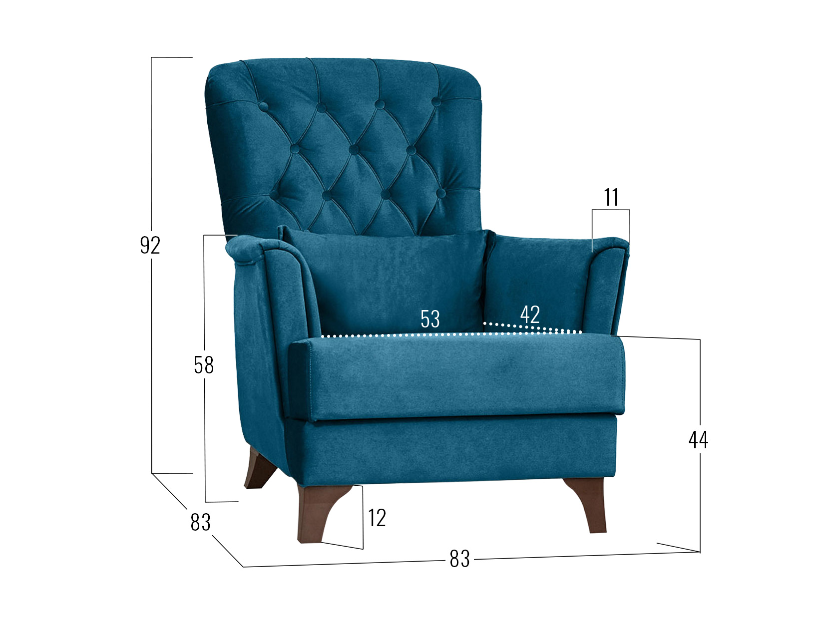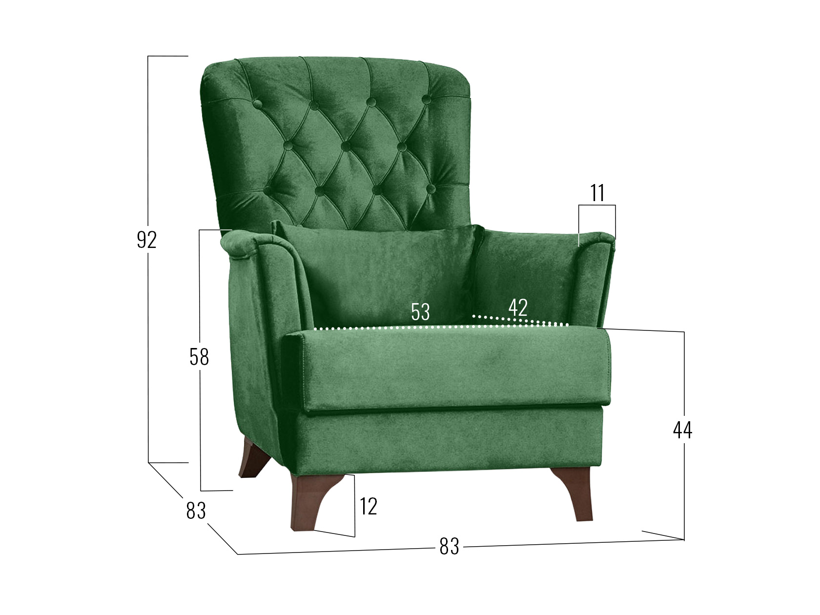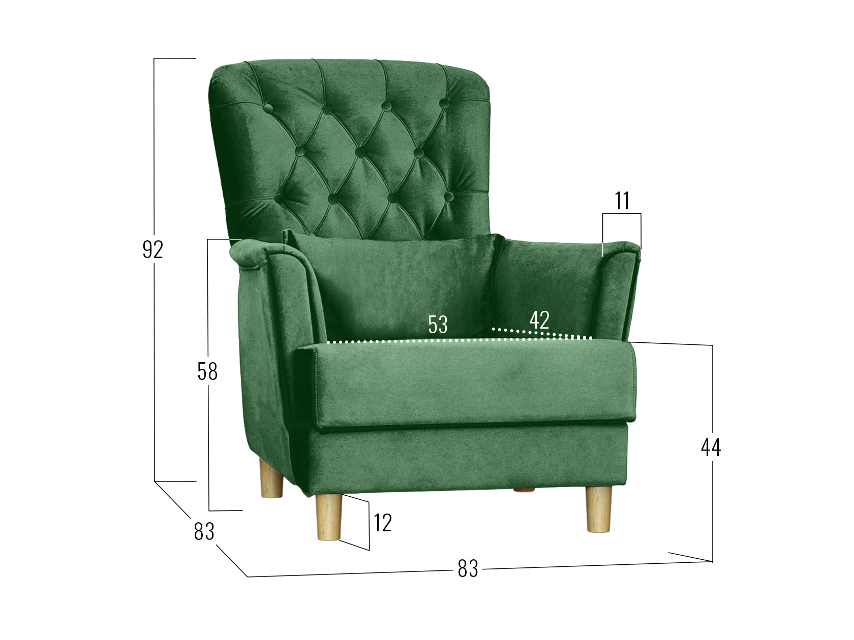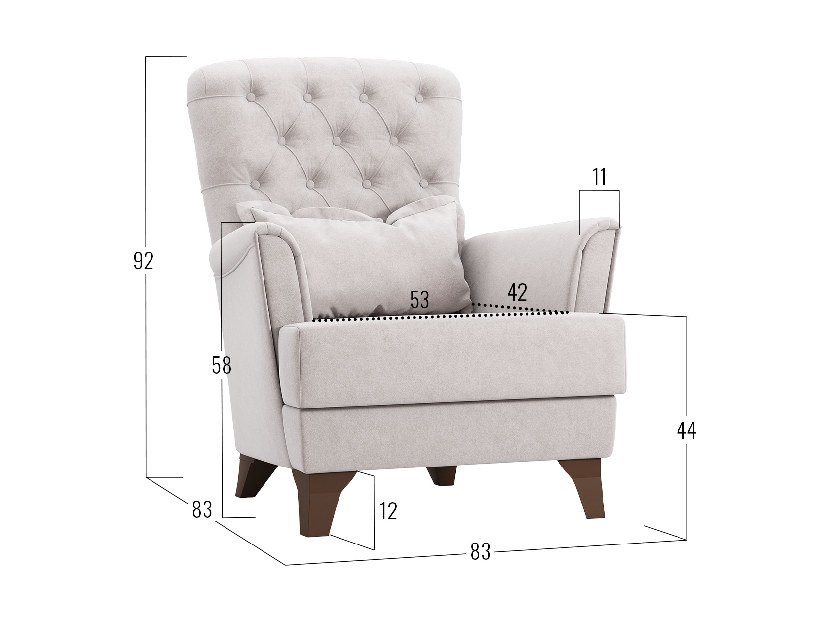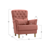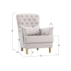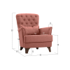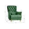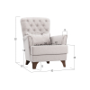 Изящная спинка декорирована каретной стяжкой с большими пуговицами, а мягкие подлокотники имеют утонченную форму. Для наибольшего удобства в комплект входит мягкая приспинная подушка.