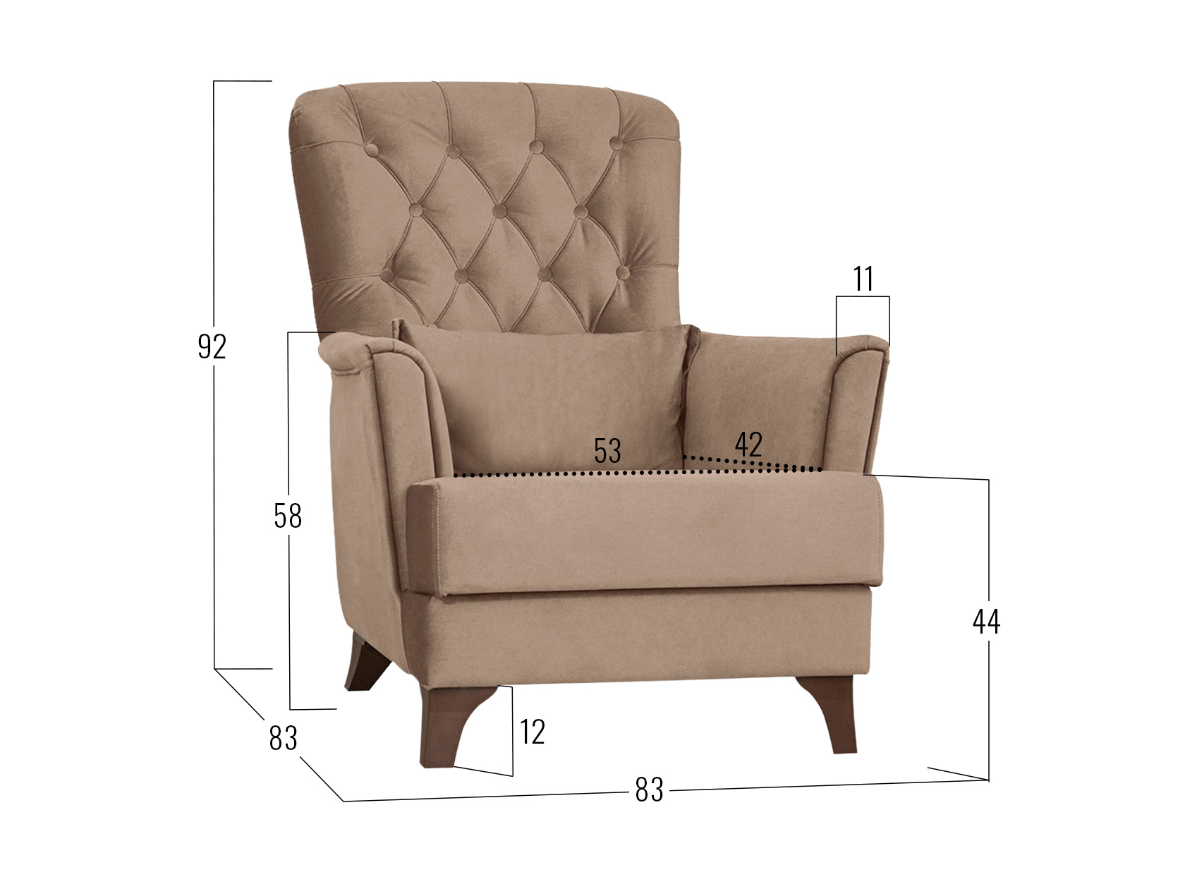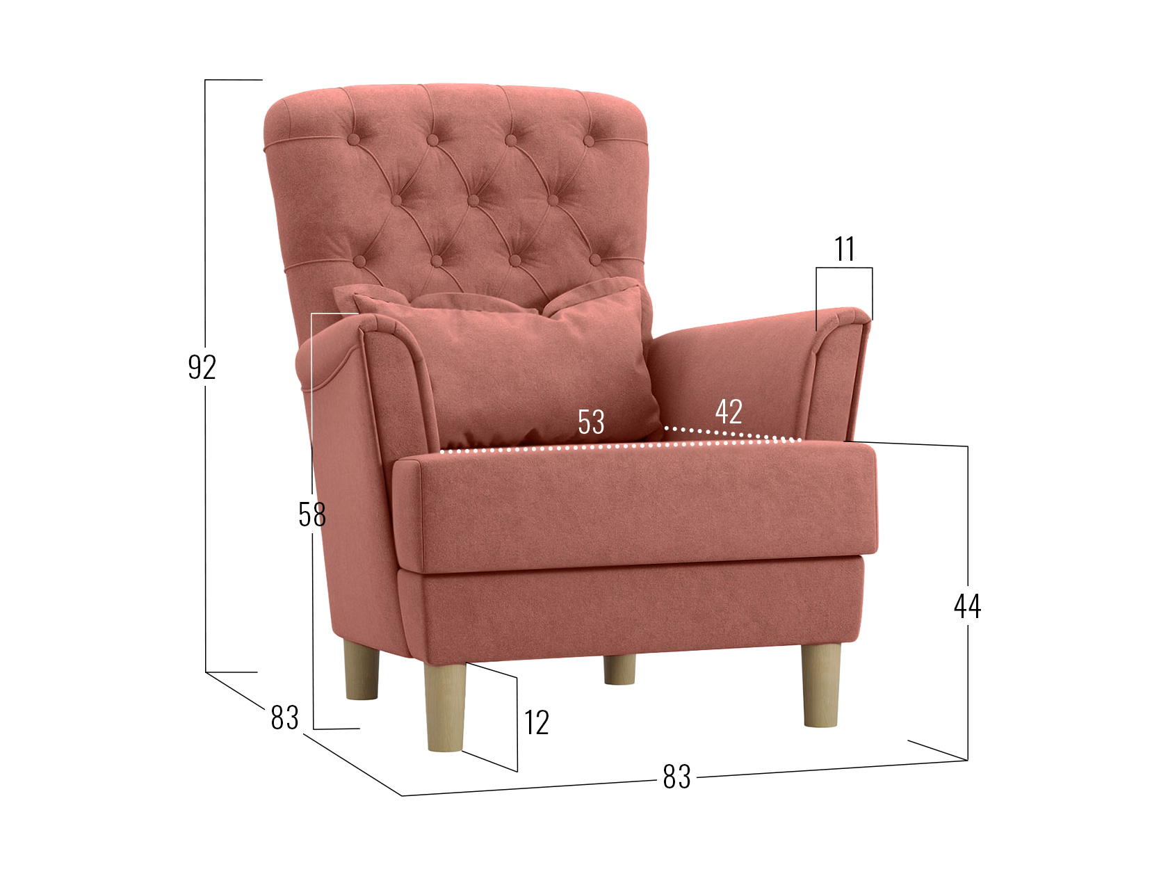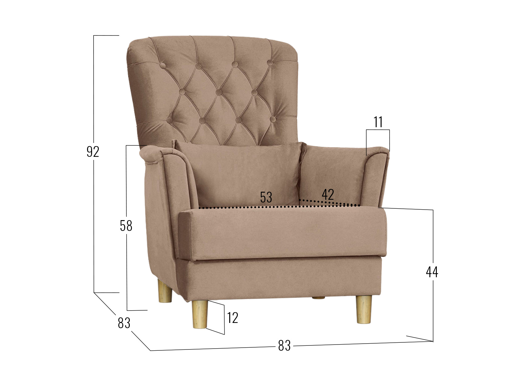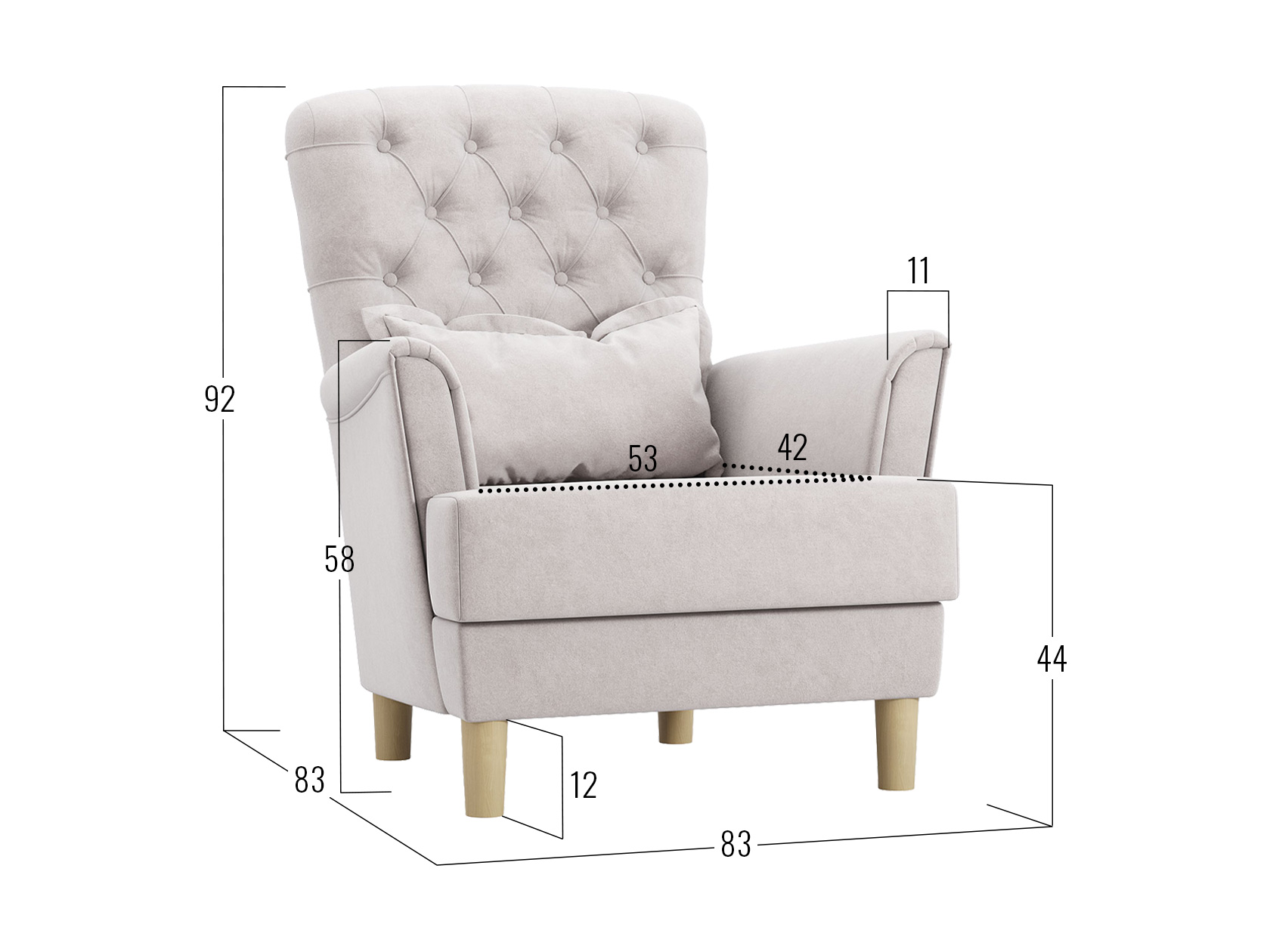 Посадочное место без подушки (ШхГ): 53 х 56 см.