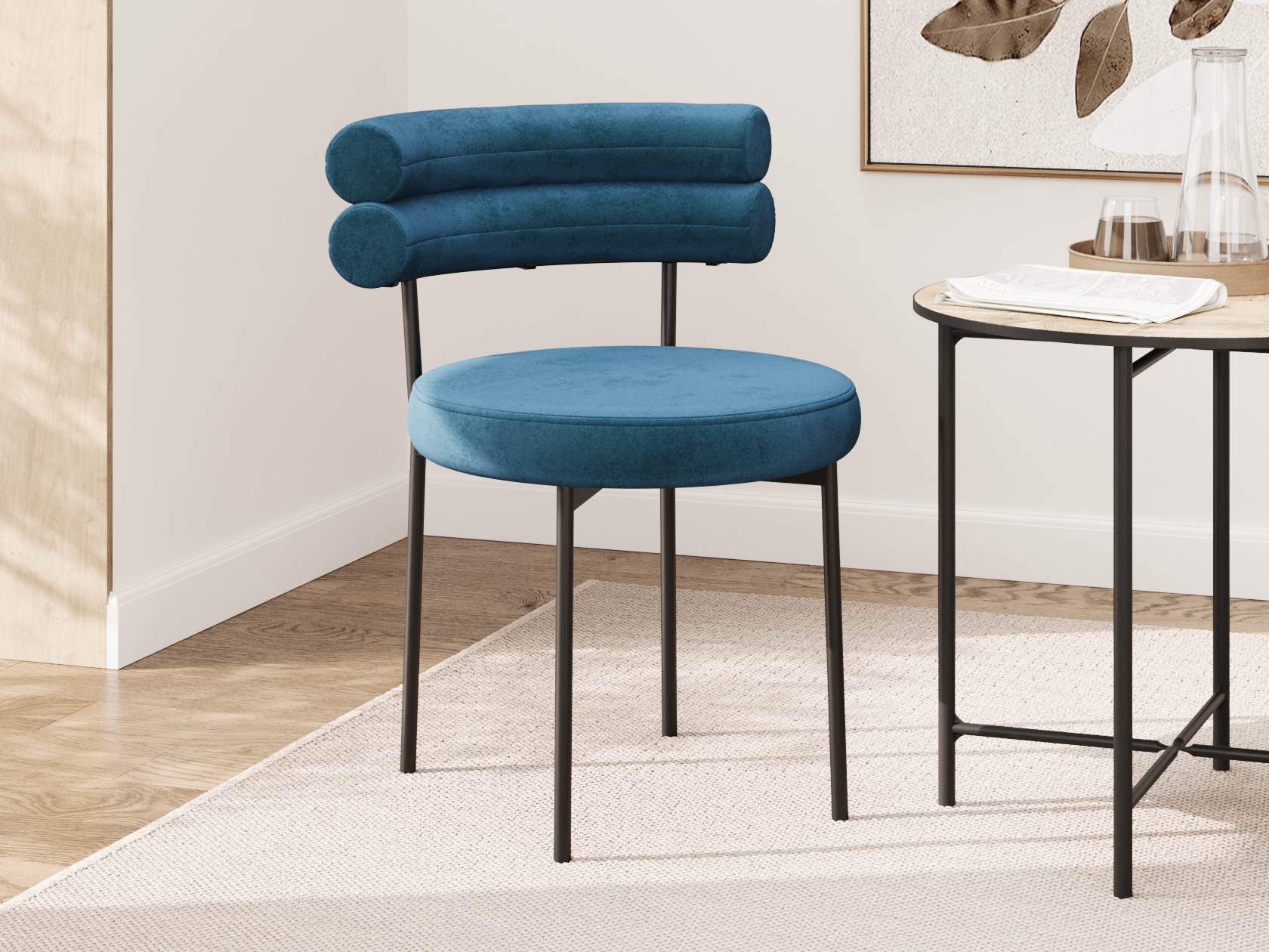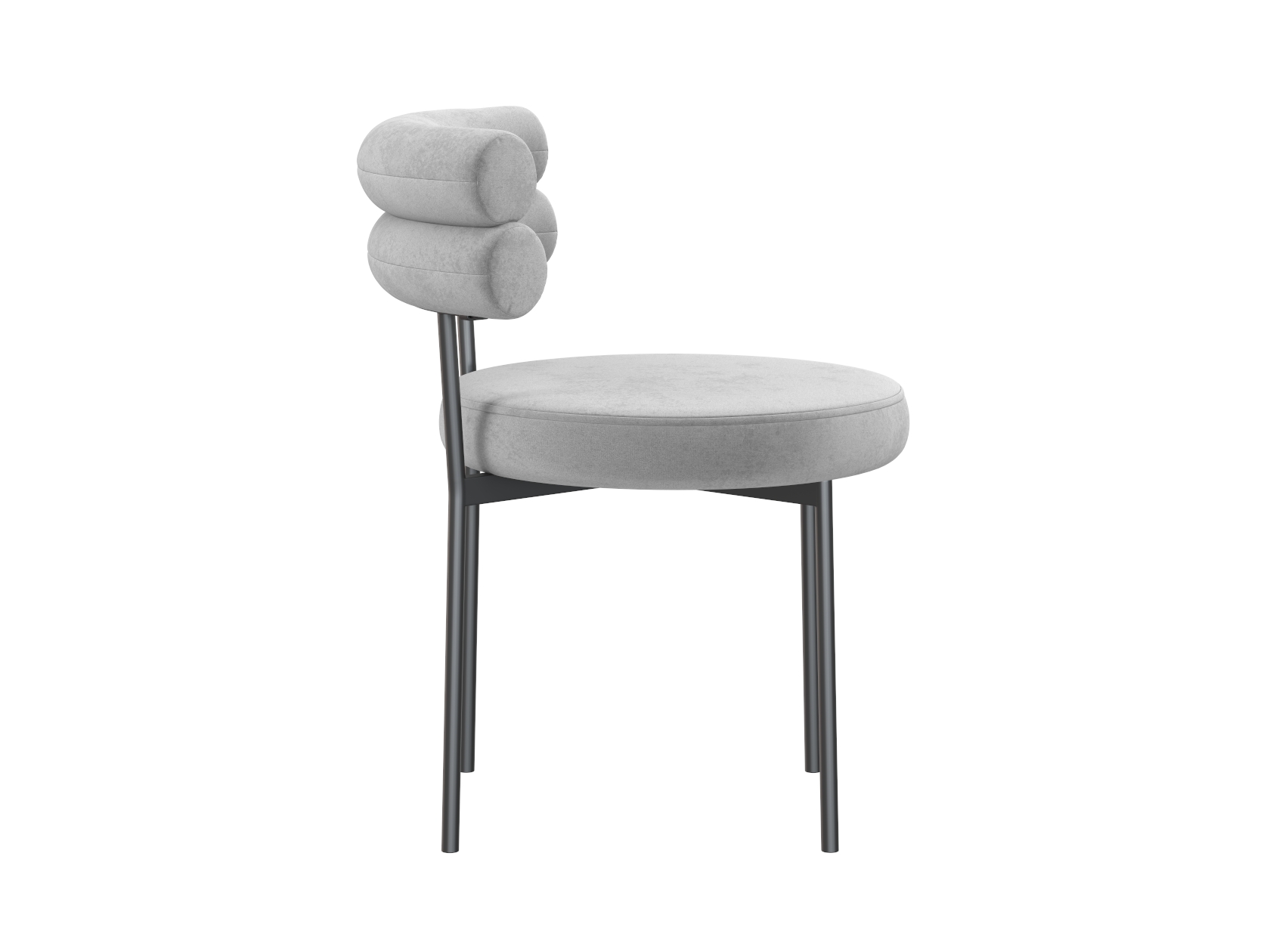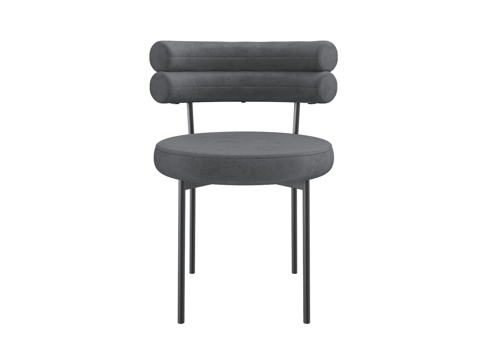Спинка в виде двойного валика запоминается необычным дизайном и помогает удобно расположиться. Мягкое сиденье делает модель особенно комфортной, а металлические ножки обеспечивают прочность и устойчивость конструкции.