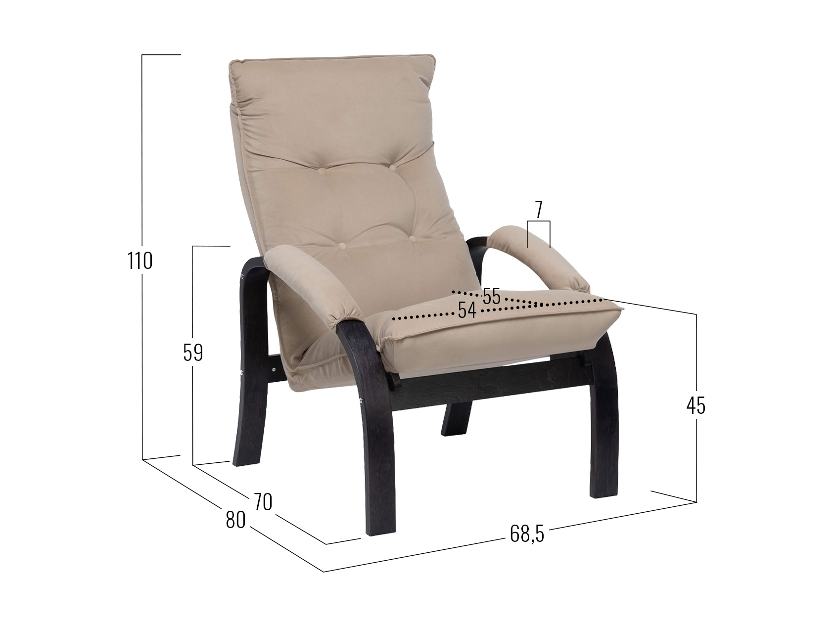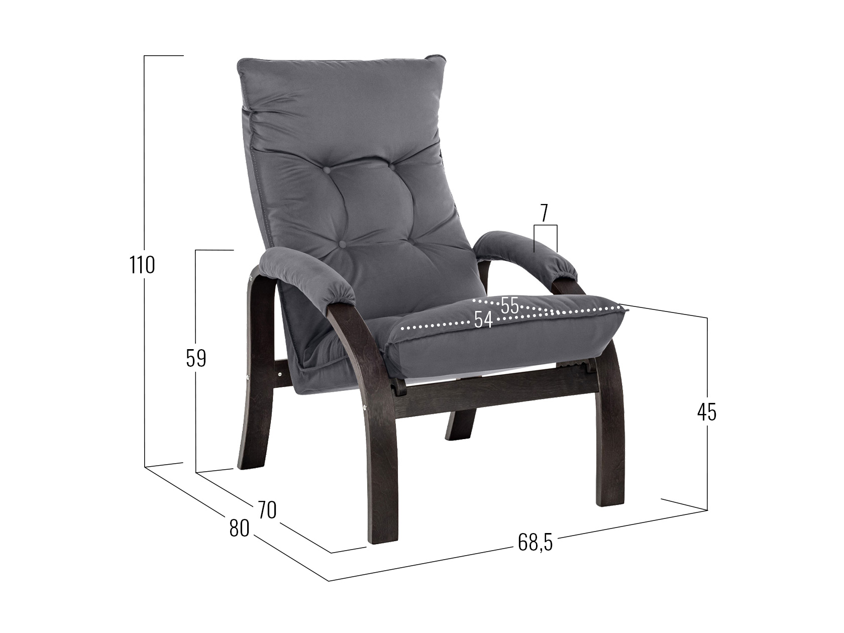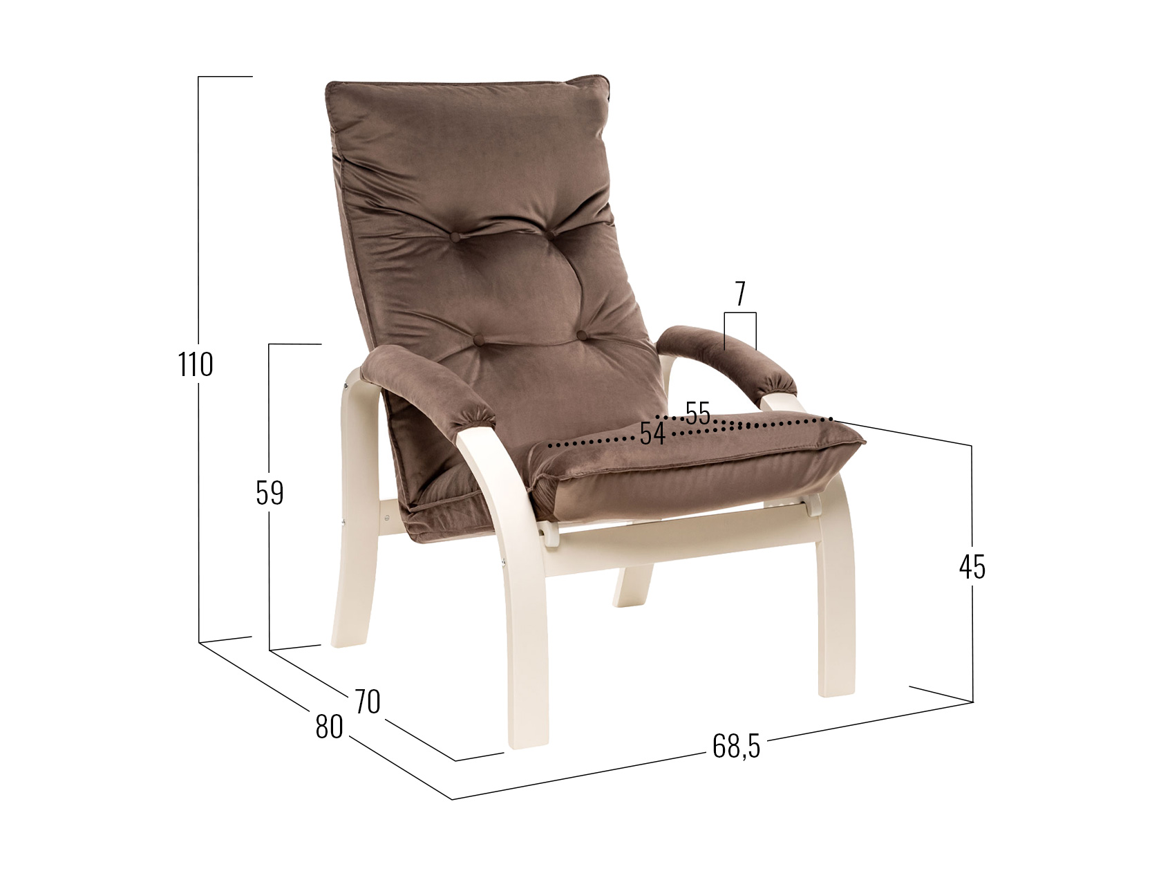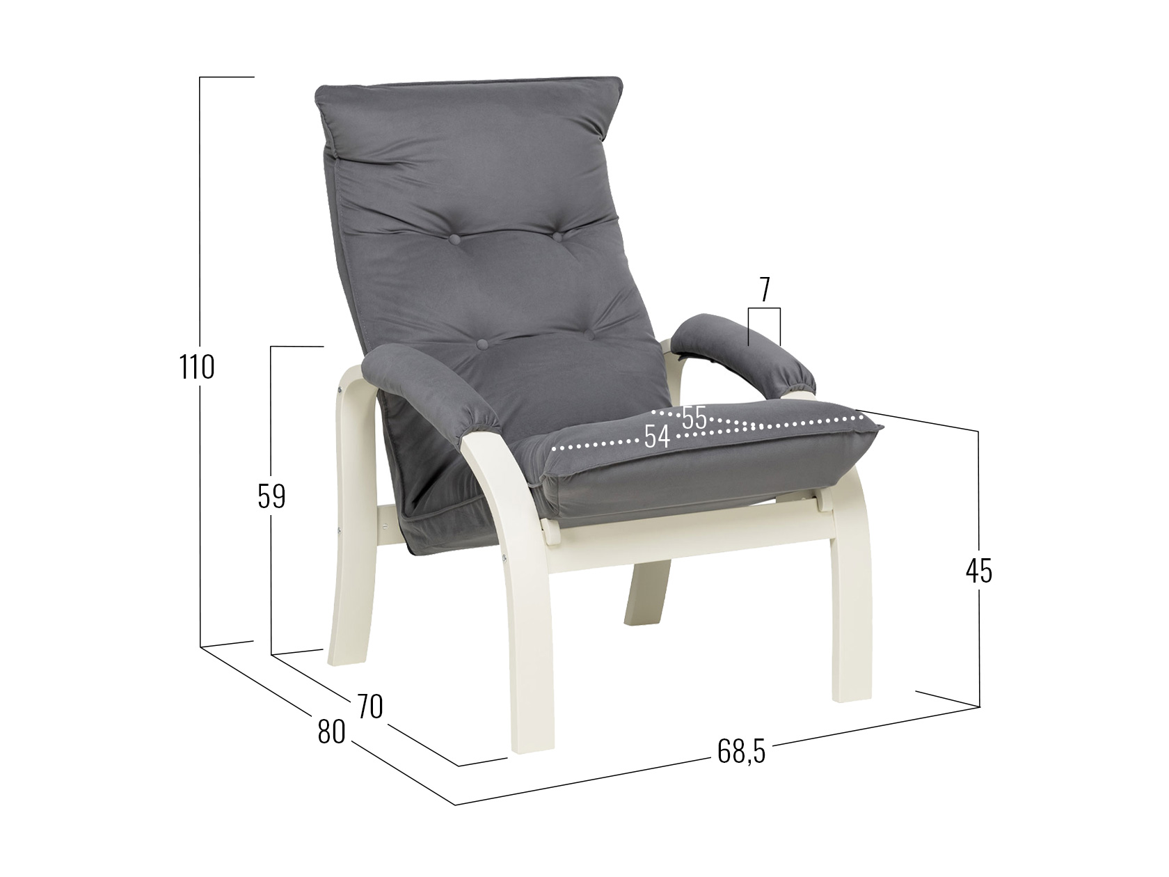 Высокая откидная спинка поможет расслабиться, устроившись с чашкой чая или любимой книгой. Четыре положения позволяют найти наиболее комфортный вариант. Надежное основание делает модель устойчивой, а мягкие обивка и подлокотники дарят удобство во время длительного нахождения в кресле. Благодаря высоким ножкам и декоративной строчке мебель привлекательно смотрится как в квартире, так и загородном доме.