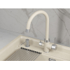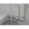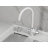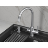 Надежный материал гарантирует долговечность и защиту от коррозии. Удобный рычаг позволяет плавно регулировать напор и температуру воды. Особенность аксессуара — интеграция с системой фильтрации, которая дает возможность переключаться между водопроводной и фильтрованной водой. Керамический картридж обеспечивает точную настройку и долгий срок службы.
