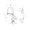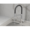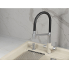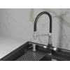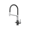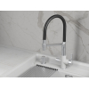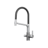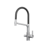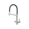 Гибкий силиконовый излив позволяет направлять струю в любую точку мойки. Рычажное управление гарантирует плавную регулировку температуры и напора. Два режима подачи — струя и душ — легко переключаются с помощью поворота лейки. Аксессуар оснащен встроенным каналом для подключения к фильтру, чтобы обеспечить чистую питьевую воду. Керамический картридж гарантирует долгий срок службы.